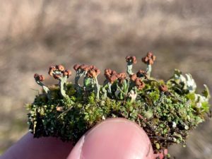 Si tratta di un piccolo lichene sempre più raro e minacciato in tutta Europa, legato in particolare alle brughiere a Calluna di bassa quota, ma presente talvolta anche nelle praterie aride, come in questo caso.